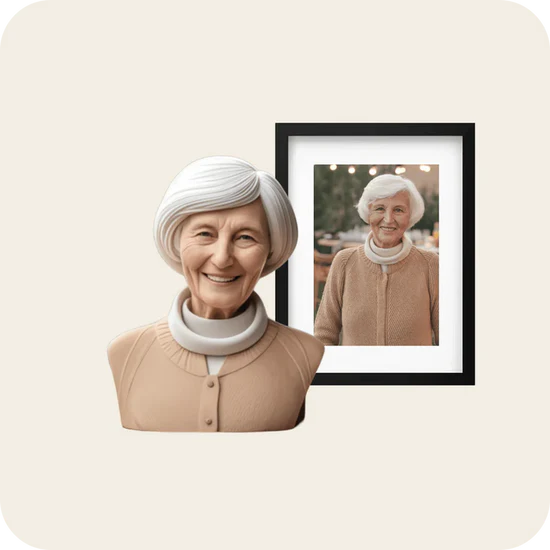 Gestalten Sie ein zeitloses Andenken mit einem individuellen 3D-Porträt, das die Erinnerung über Generationen hinweg lebendig hält.