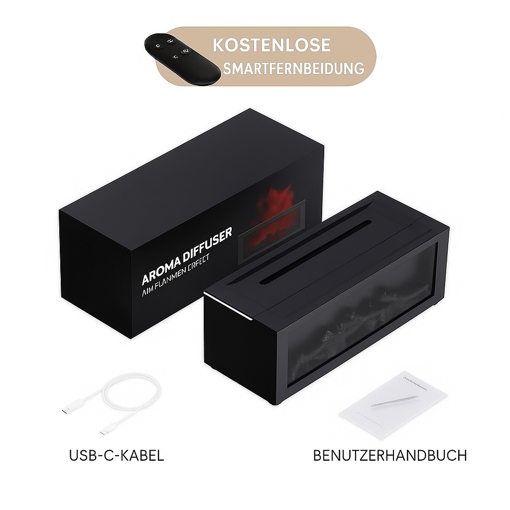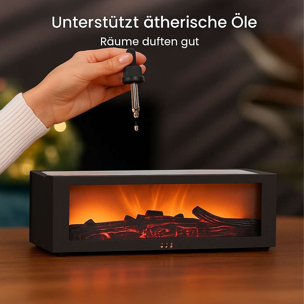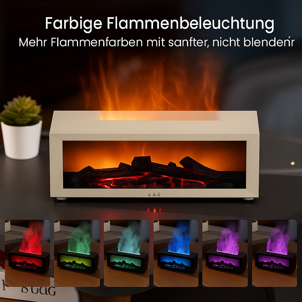 Verwandeln Sie jeden Raum in eine warme, entspannende Wohlfühloase – mit beruhigendem Nebel, realistischem Flammenschein und Ihren Lieblingsdüften.
